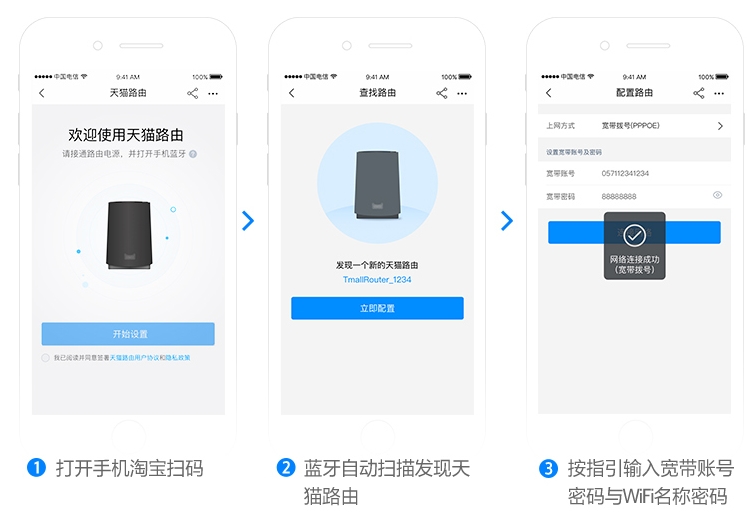 配置天猫路由器需要用到手机来操作,上网配置只需要三步