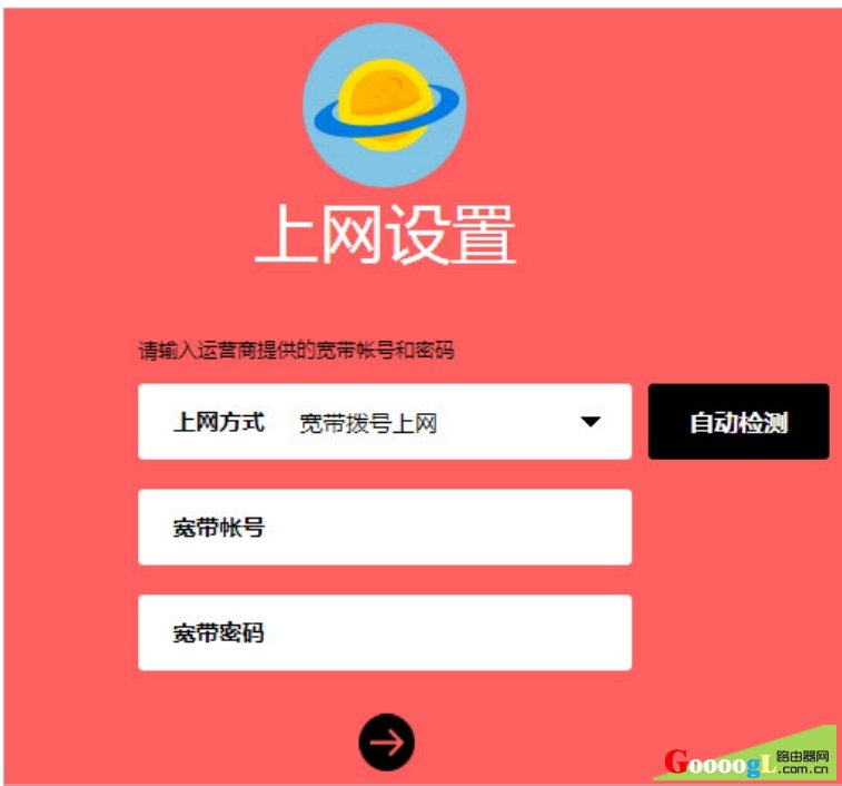2. 在设置密码框填入您要设置的登录密码(6~32个字符,最好是数字、字母、符号的组合),在确认密码框 再次输入,点击 。以后登录路由器管理页面请使用已设置的管理员密码。 提示: 若忘记了登录密码请点击登录页面上的忘记密码并根据提示将路由器恢复出厂设置。一旦将路由器恢复出厂设置,您 需要重新对路由器进行配置才能上网。
