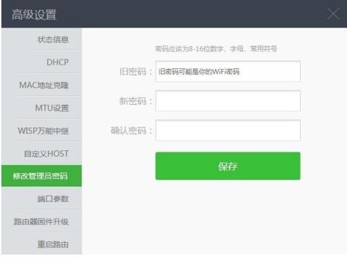 3;配置完成后记得去【高级设置】【修改管理员密码】输入您想要设置的登录密码。最好是您可以记住的密码。