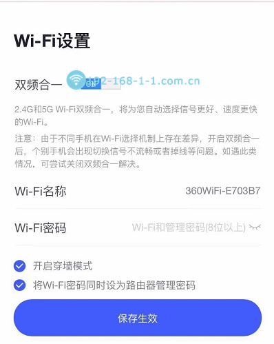 4;进入WI-FI设置;设置360路由器的无线网络名称和无线密码,并可以勾选将WIFI密码与管理员密码设置为相同。