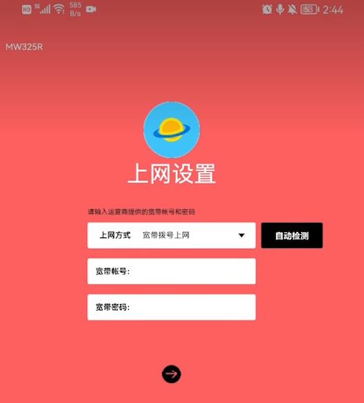 您可以选择自动检测当前的上网方式,如为拨号上网,请输入宽带账户和密码(由宽带运营商提供)。