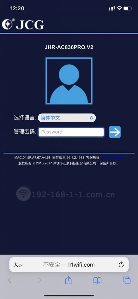 登录地址:h1wifi.com 或 192.168.71 (JHR-AC836PRO)