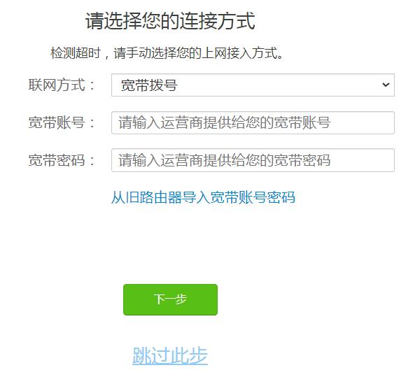 根据自己的网络环境,选择相应的上网方式,比如PPPoE、DHCP或者静态IP。如果不知道应该选择哪种上网方式,可以使用自动检测上网方式。