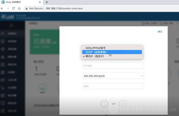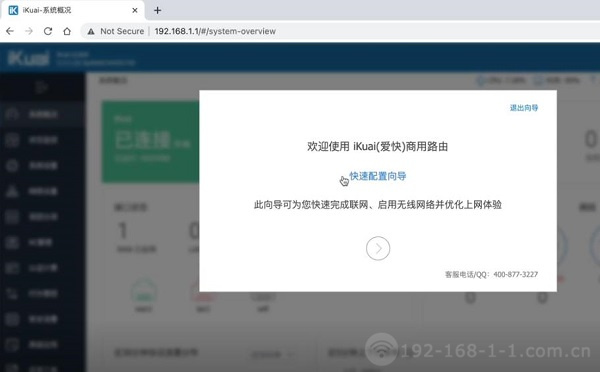要想登录设置爱快路由器,您首先需要将上网设备连接至路由器的LAN口,并打开设备网页浏览器,在网址栏中输入爱快路由器的登录地址进入到管理界面。