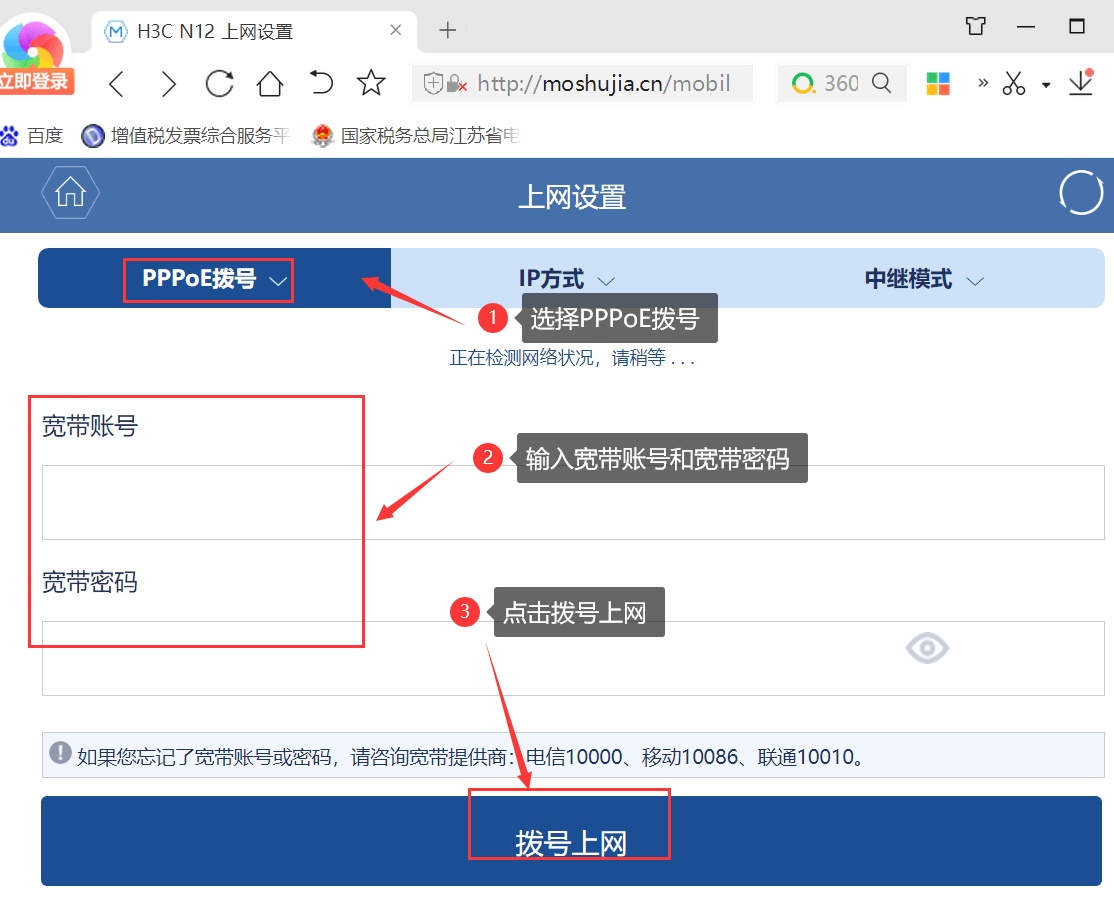 第一步;登陆h3c路由器网址,在电脑浏览器地址栏输入http://moshujia.cn