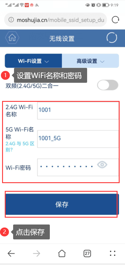 4.点击保存修改了h3c路由器的WiFi名称或者密码,则需要重新连接h3c路由器WiFi信号后才可以上网。