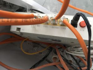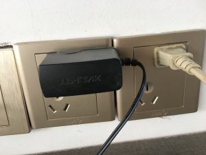 第一步:首先我们找到路由器的电源插孔,插上插排。