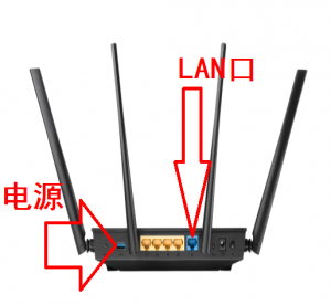 第三步:用一条网线插入LAN口旁边的任意一插口,另一头插入电脑的网口。