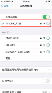 第二步:进入wifi之后,点击已经连接好的无线路由器名称,点击进去,请看下列示意图。