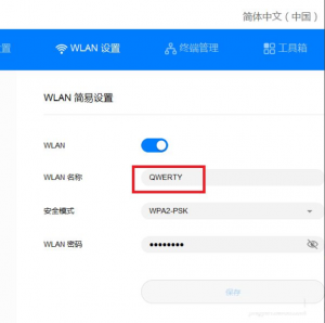 第四步:我们在下面就能看到WLAN名称旁边的小空格,这就是该SSID的地方了,下面还有修改WLAN密码,其实这就是修改wifi名称和wifi密码,我们修改后点击下面保存即可。