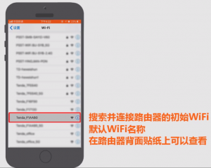 第二步:在手机无线局域网中找到该路由器的无线名称,(如果不知道无线名称的话可以查看路由器背面标签贴纸))首次连接无需输入wifi密码;