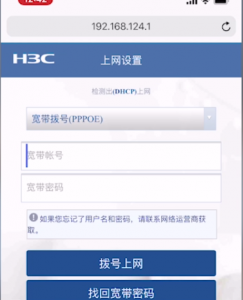 拨号上网;常用于大部分家用环境,入户网线接蓝色WAN口,接好电源,启动过程中绿灯闪烁,启动完成之后手机连接Wi-Fi,打开浏览器登陆192.168.124.1(如果自动弹出跳过这步),选择PPPoE拨号,输入宽带账号密码,拨号上网,提示成功之后,下一步,设置无线名称密码,重新连接Wi-Fi即可上网;