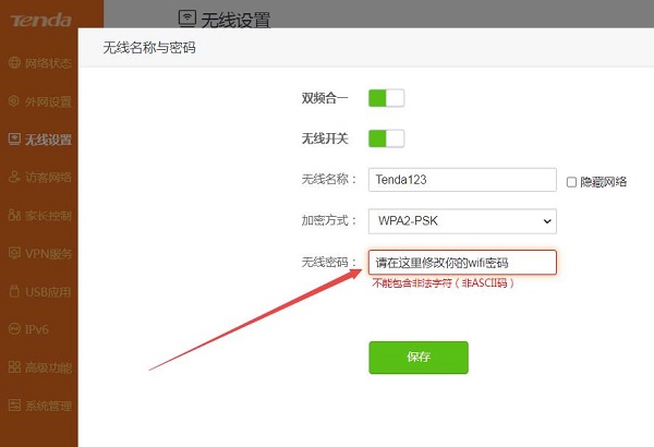 5. 点击“保存”按钮,保存设置。这样,tenda路由器的wifi密码就设置完成了。