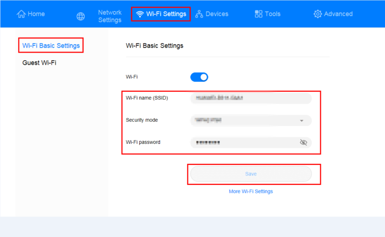 2. 从顶部菜单中选择 Wi-Fi 设置,然后选择 Wi-Fi 基本设置。