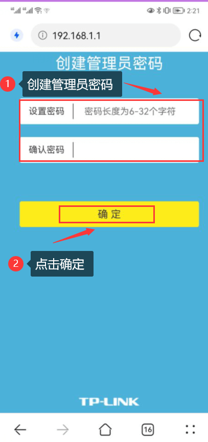 第五步:创建198.168.1.1登陆管理员密码(这个198.168.1.1登陆密码要牢记,下次登陆198.168.1.1页面需要正确输入密码才能进入)