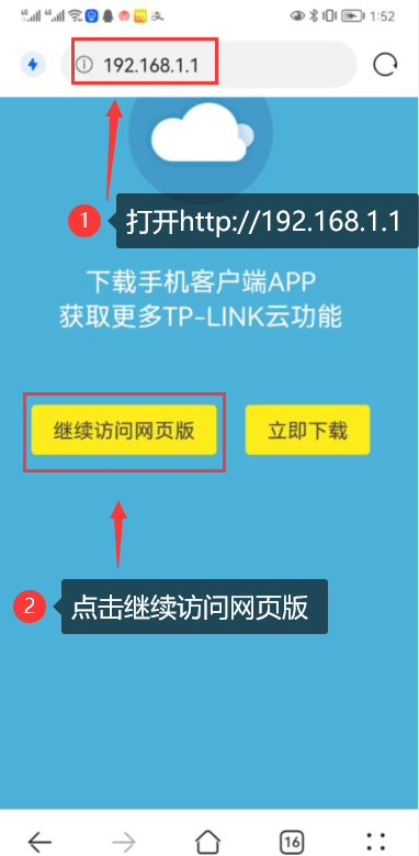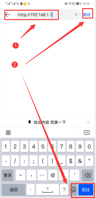 第三步:手机浏览器输入http://198.168.1.1点击前往,