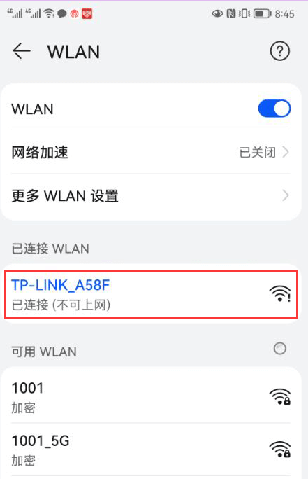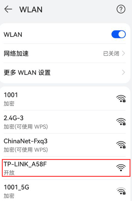 第二步:路由器恢复初始状态后,手机可以不用输入路由器WiFi密码,直接连接路由器WiFi。