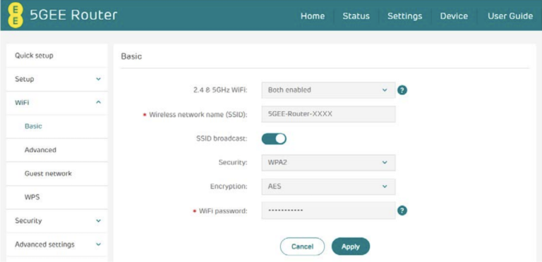 EE Web UI 允许您在 192.168.1.1 或 192.168.1.254 更改 WiFi 密码、网络名称 (SSID) 和默认路由器设置。