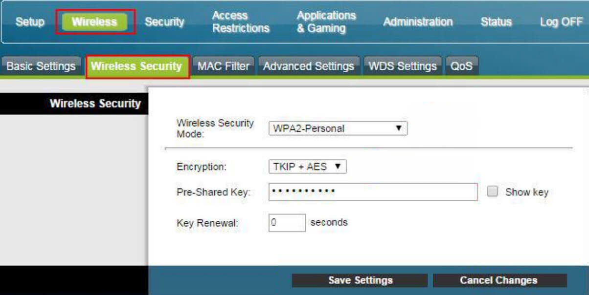 6. 在预共享密钥字段中输入 Wi-Fi 密码,然后单击保存设置。