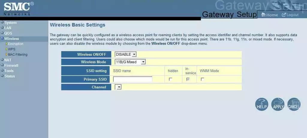4. 在无线基本设置下,在主 SSID 字段中输入 Wi-Fi 网络名称,然后单击应用。