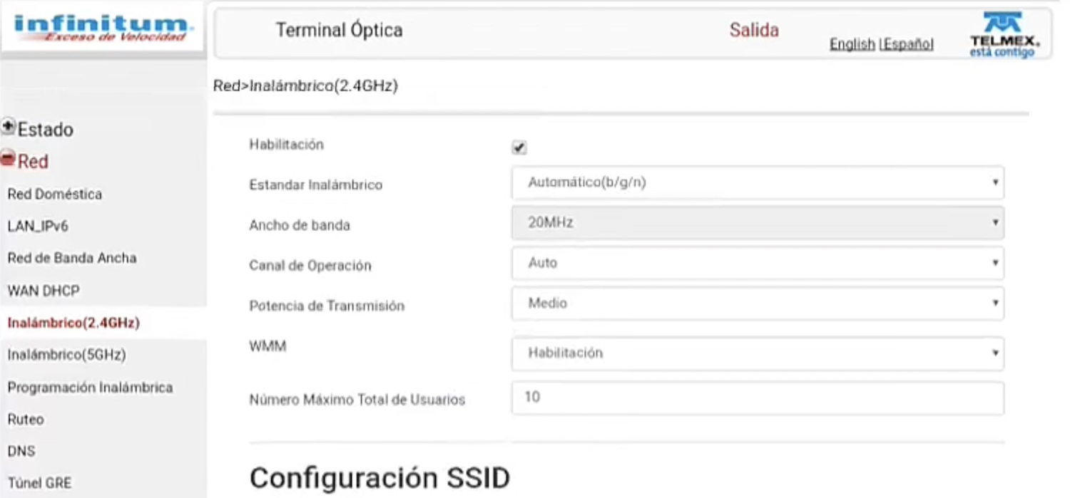 3. 您将登录到 Telmex Infinitum 设置。