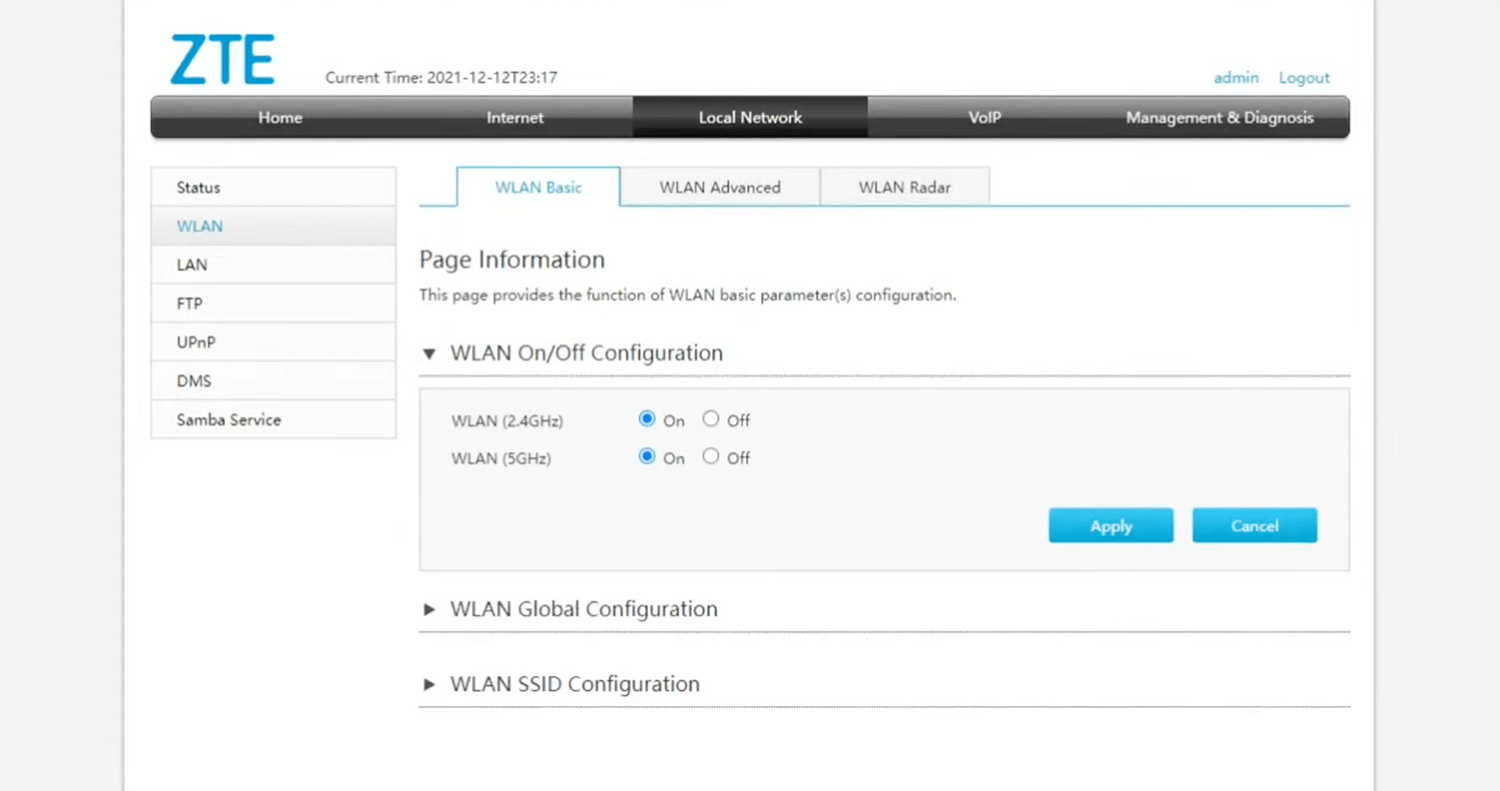 2. 选择“本地网络”>“WLAN”>“WLAN 基本”。