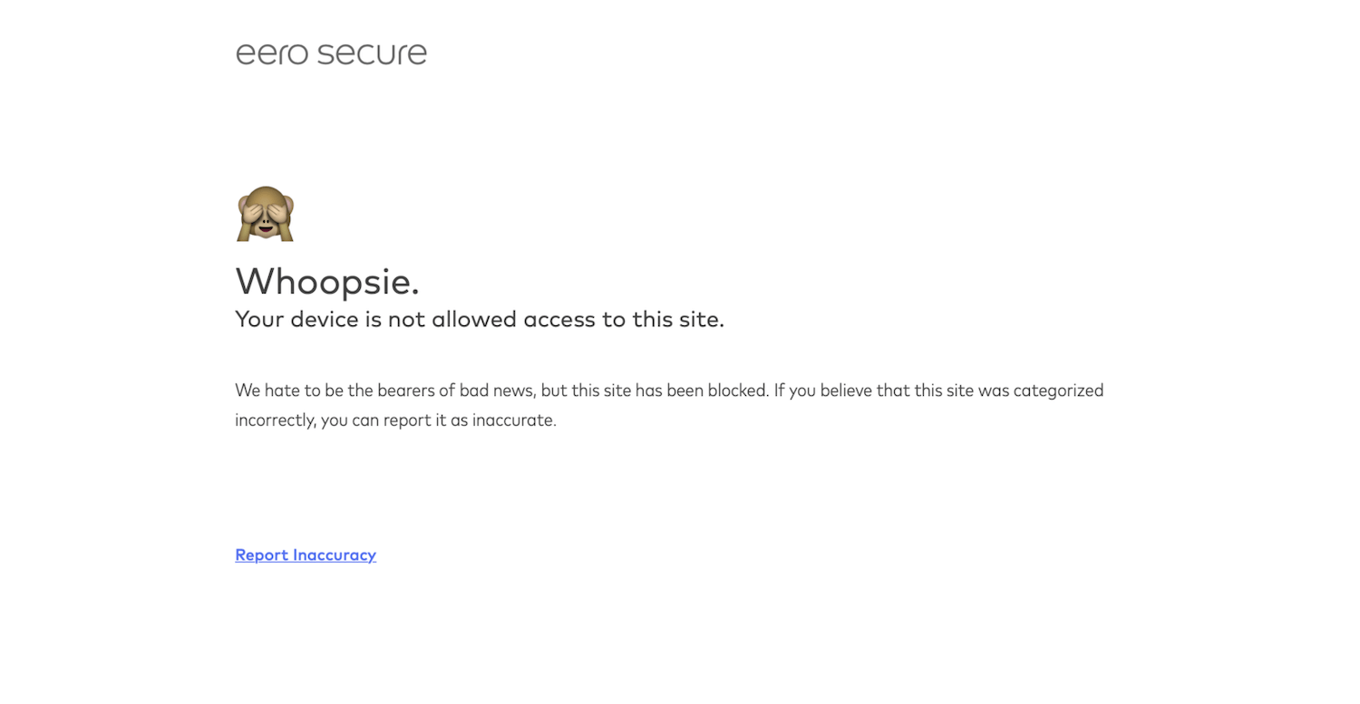 注意:如果您尝试在 Web 浏览器上使用 192.168.4.1 IP 地址打开 Eero 网关,Eero Secure 可能会阻止该请求。