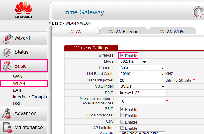 3. 单击左侧菜单中的“基本”,然后选择“WLAN”。