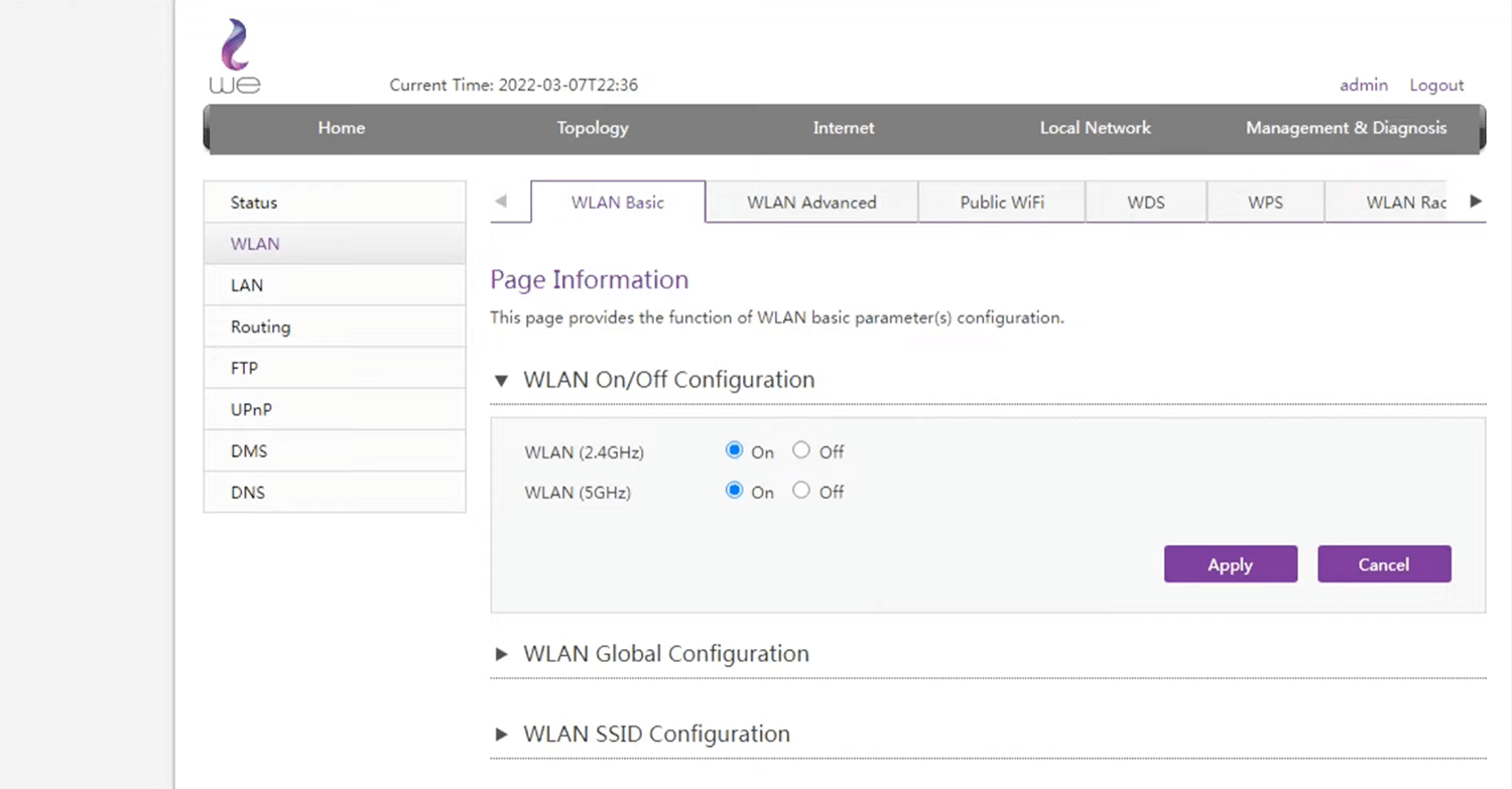WE 基于 Web 的用户界面允许您更改 WiFi 密码、网络名称 (SSID) 和默认的 WE Telecom Egypt 路由器或调制解调器设置。
