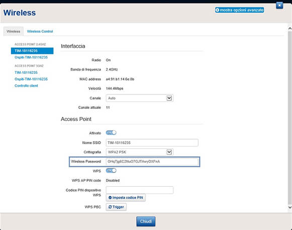 TIM 路由器管理页面允许您更改 WiFi 密码、网络名称 (SSID) 和默认 TIM HUB 设置 http://192.168.1.1。