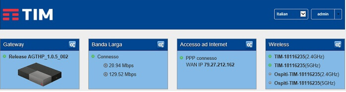 注意: 如果您使用的是 TIM HUB+,则可以在地址栏中键入 http://modemtim/ 以访问 Web 界面。