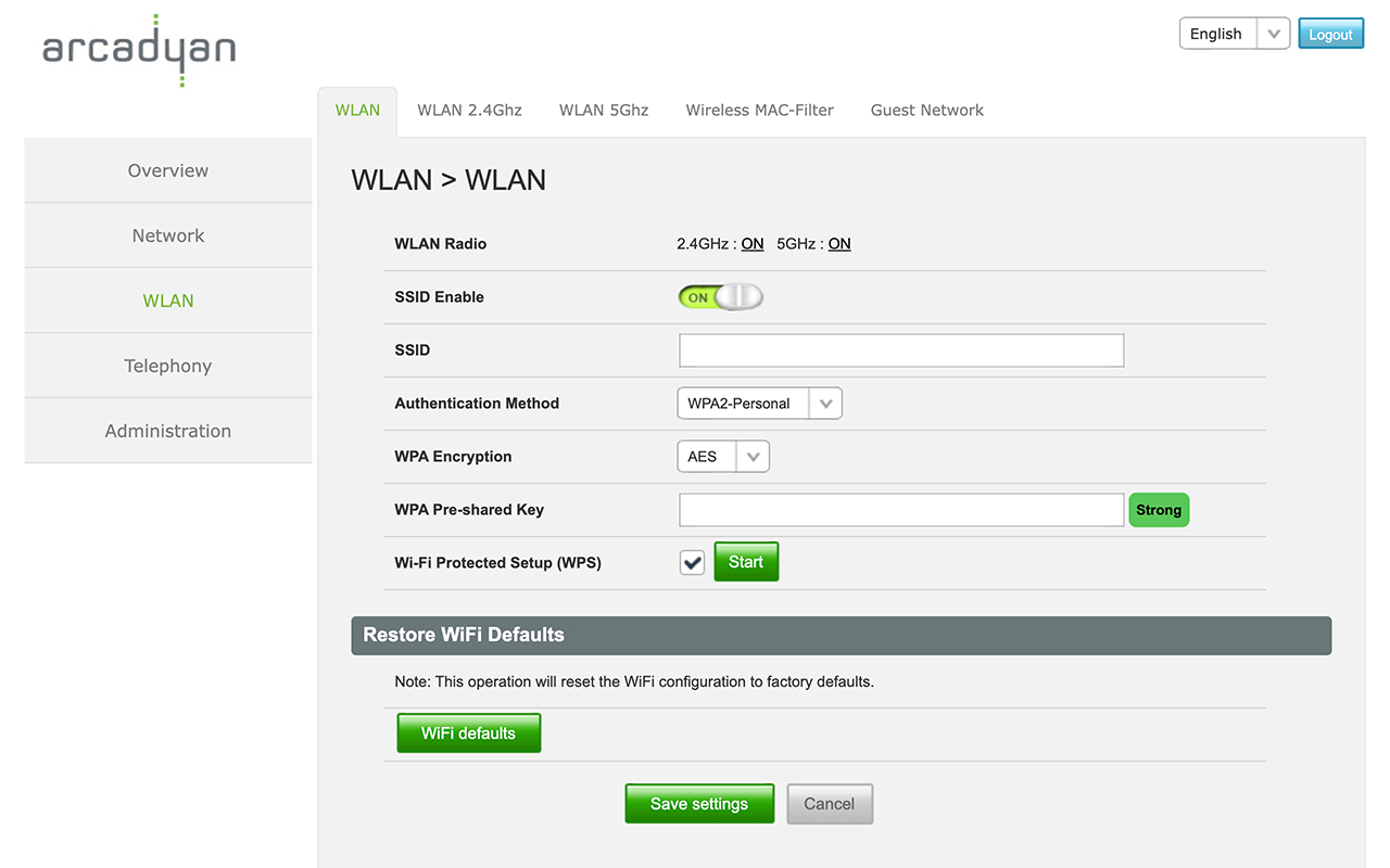 4. 选择 WLAN > Basic > SSID。