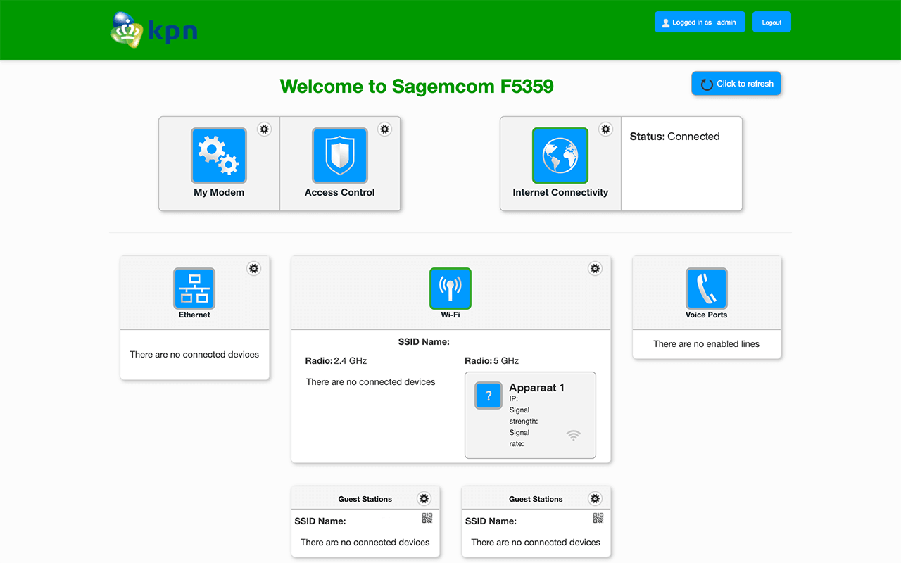 KPN 路由器接口允许您在 http://mijnmodem.kpn 或 192.168.2.254 上更改 WiFi 密码、网络名称 (SSID) 和默认 KPN Box 设置。