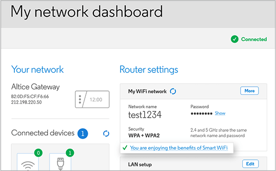 Optimum路由器允许您更改 WiFi 密码、网络名称 (SSID) 和默认路由器设置 http://router.optimum.net。
