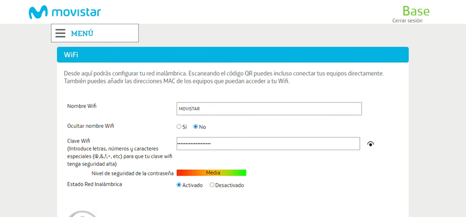 3. 您将登录到 Movistar 路由器设置。