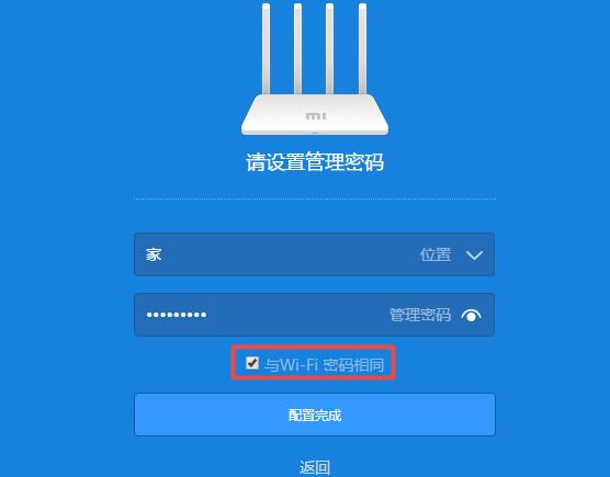 (2)、如果你觉得记忆多个密码比较麻烦,可以勾选:与Wi-Fi密码相同 这个选项,把前面设置的wifi密码作为管理密码。