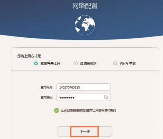 也可以使用华为路由Q1上的“从就路由器获取”功能,从你原来的路由器上获取宽带账号和宽带密码,具体操作如下所示: