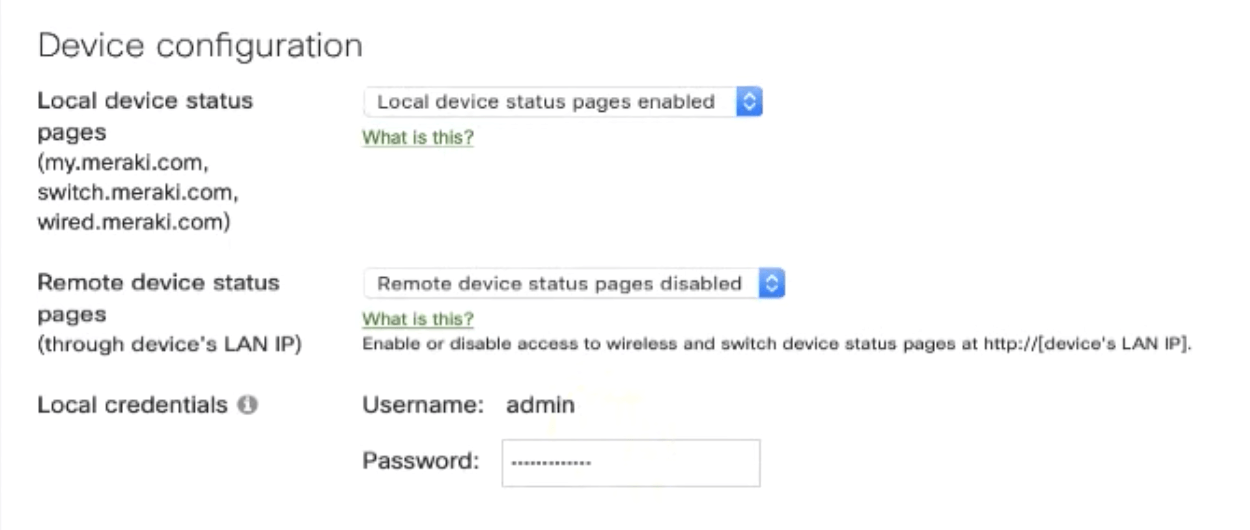 Cisco Meraki 设备本地状态页面登录凭证为以下任一信息: