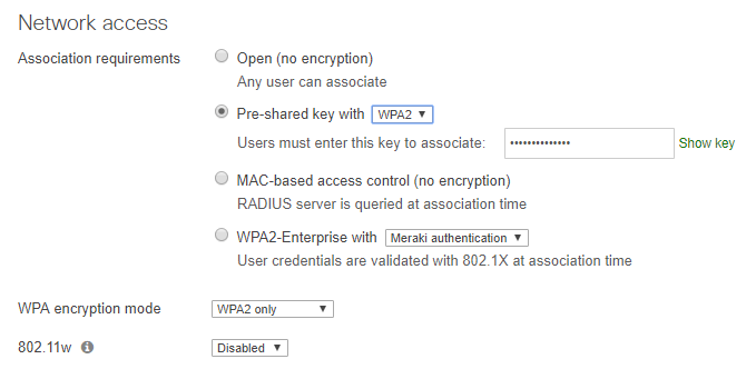 6. 在“网络访问”下,选择“预共享密钥(PSK)”。