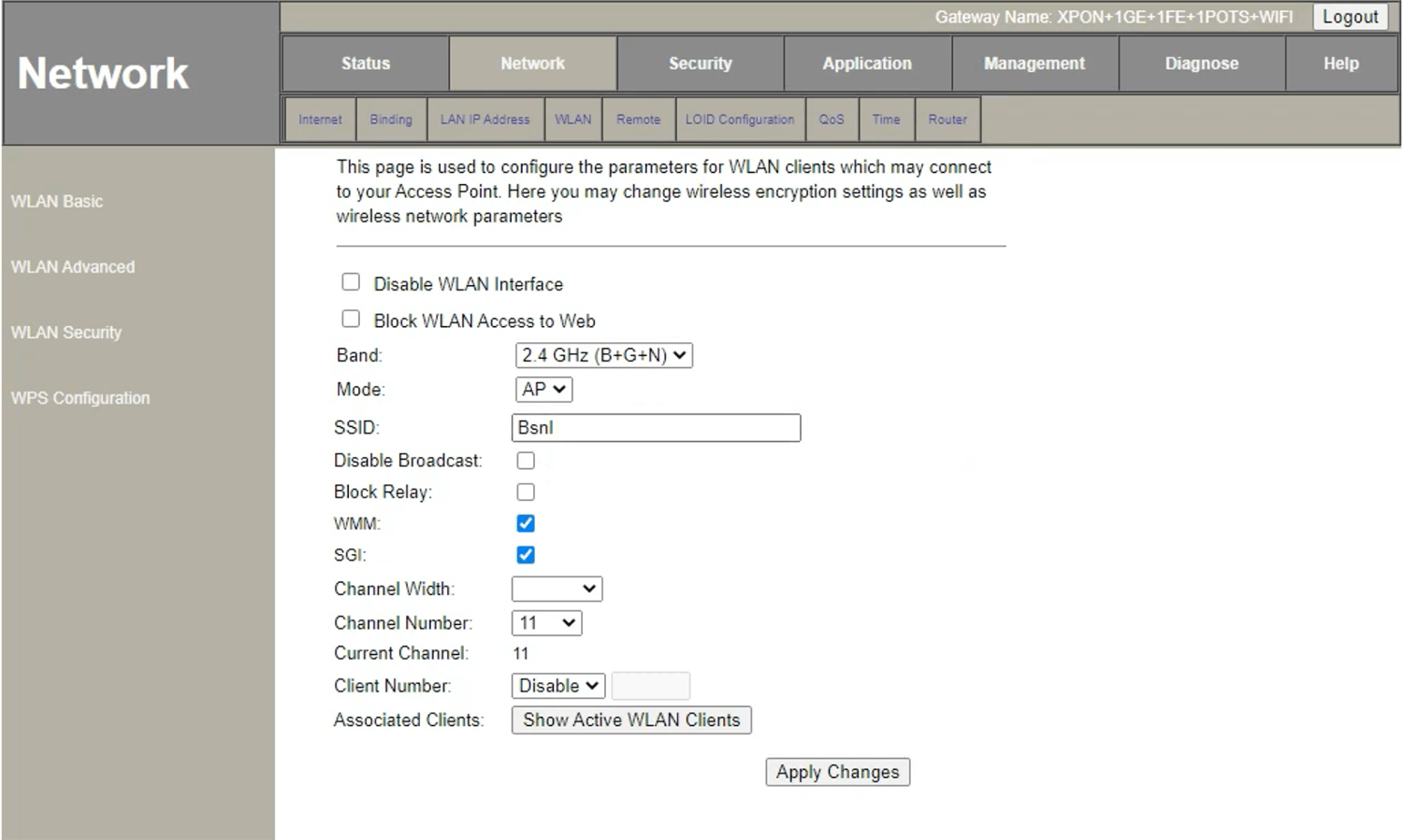 2. 转到 WLAN > WLAN Basic 的网络>。
