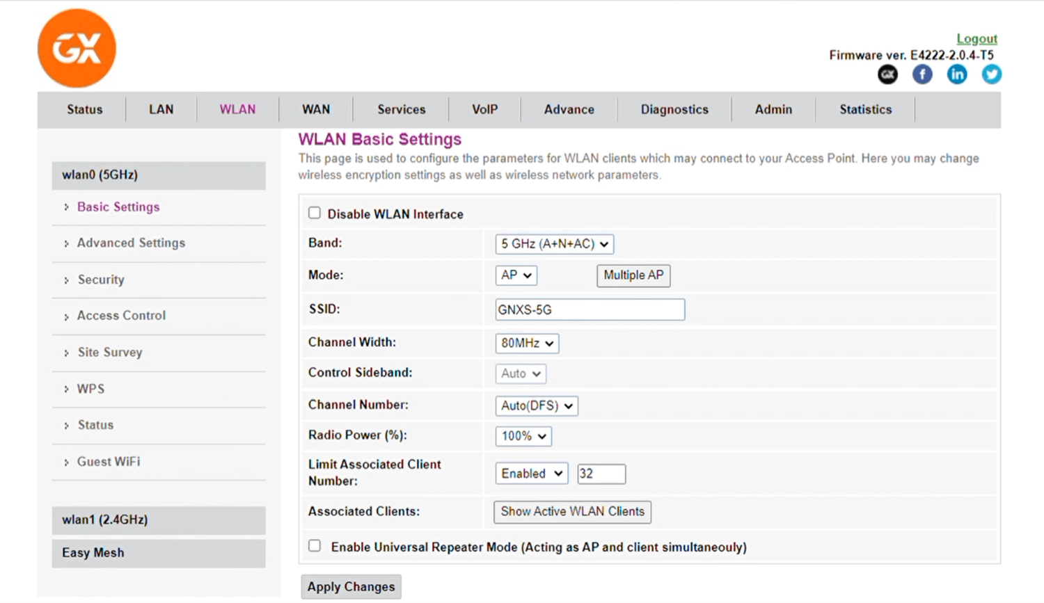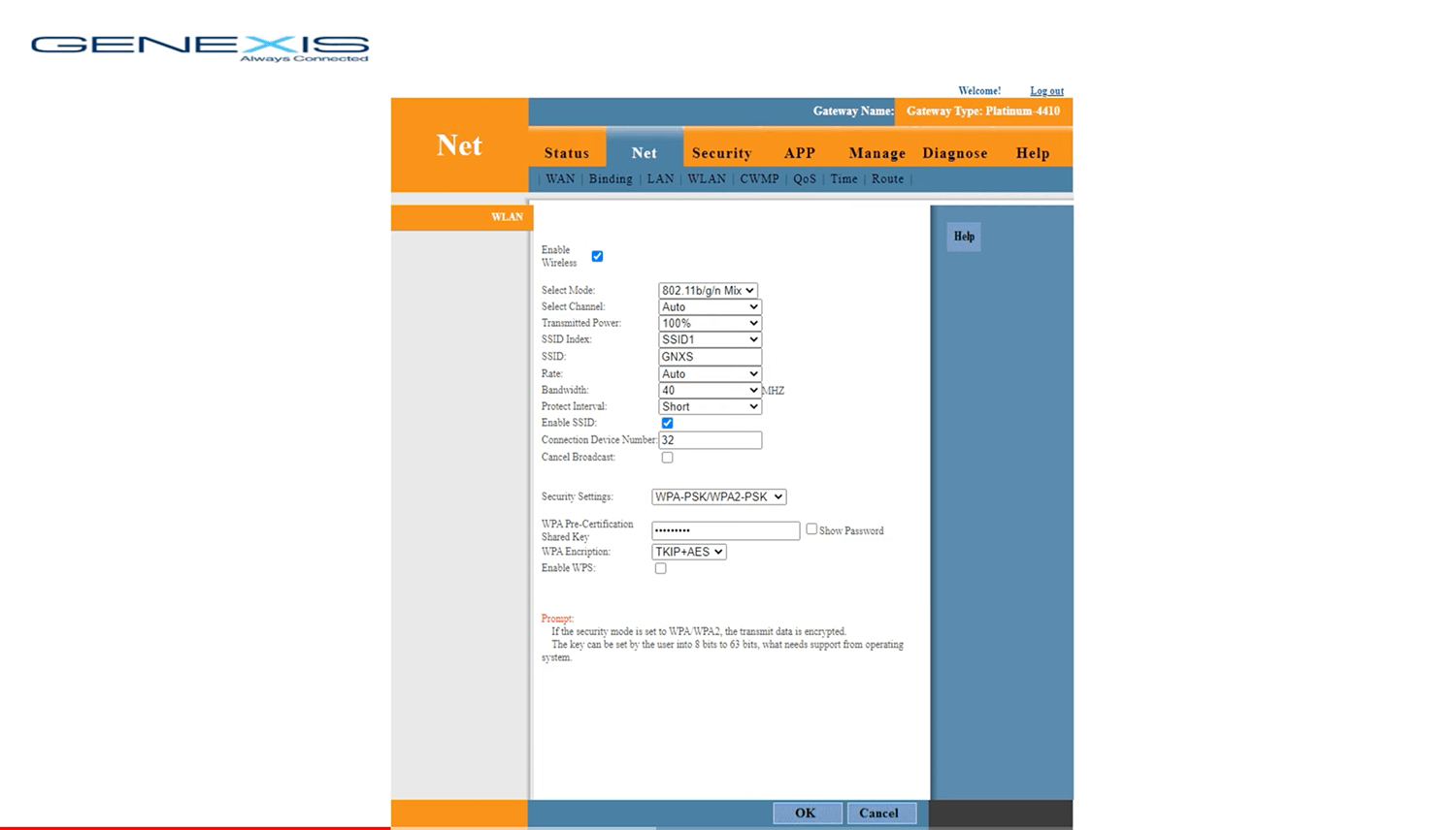 如果您的路由器是双频,则需要同时配置 5GHz 和 2.4GHz 频率。 Genexis PLATINUM 4410