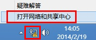 ,右键点击并选择打开网络和共享中心。如下图所示: