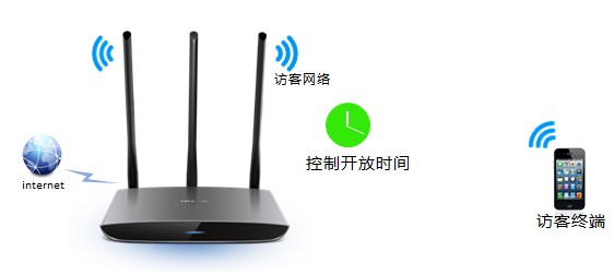 访客网络是路由器专门为来访客人提供的无线信号,支持定时开启或关闭。比如,您需要在某个时间段举办家庭聚会,则可以设置这个时间段开放访客网络给客人使用,其他时间则处于关闭状态,从而有效保障网络安全。