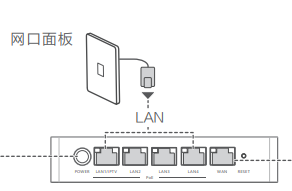 2. 将子路由分别拿到各个需要 Wi-Fi 覆盖的房间或角落,将子路由背部的网线连接到墙面网口(请确保该墙面网口的预埋网线已经连接到母路由 LAN 口)。