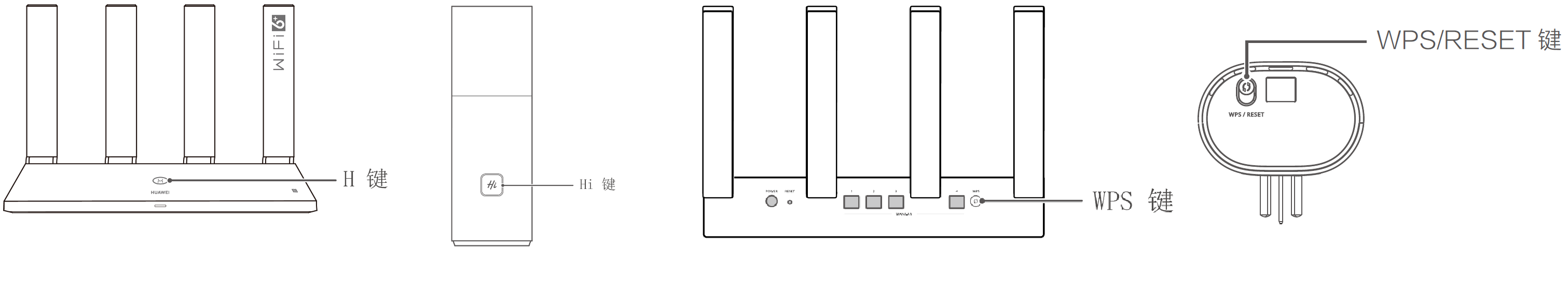 部分主路由若没有 H(Hi)或 WPS (WPS/RESET) 键,请将新增的副路由放在已组网的副路由的附近(例如华为凌霄子母路由 Q6E,是放在已组网的子路由附近)。