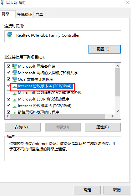 4. 右键单击以太网,在弹出菜单中选择属性,双击Internet协议版本4(TCP/IPv4)。