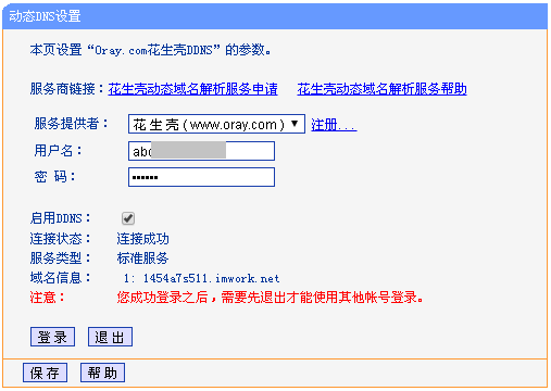 进入DDNS设置界面,服务提供者选择TP-LINK,登录TP-LINK ID,创建TP-LINK域名,并登录成功,如下图: