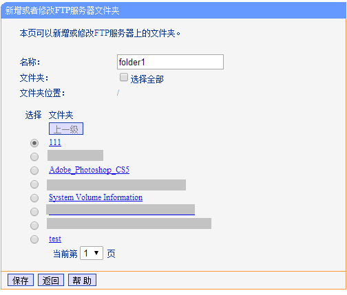 点击添加新文件夹,选择外网用户需要访问的共享文件,点击保存,如下图: