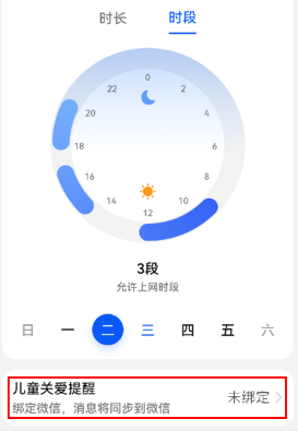 1. 点击儿童关爱提醒,绑定微信,关注微信公众号“HUAWEI WiFi”。