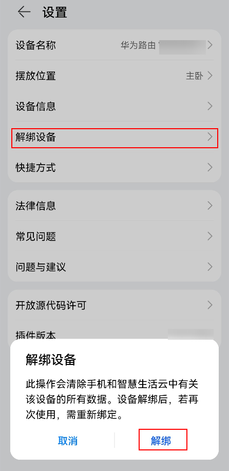 • 在智慧生活 App 解除绑定后,若您需要重新绑定,请连接路由器 Wi-Fi,按上述绑定路由器的方法操作即可。